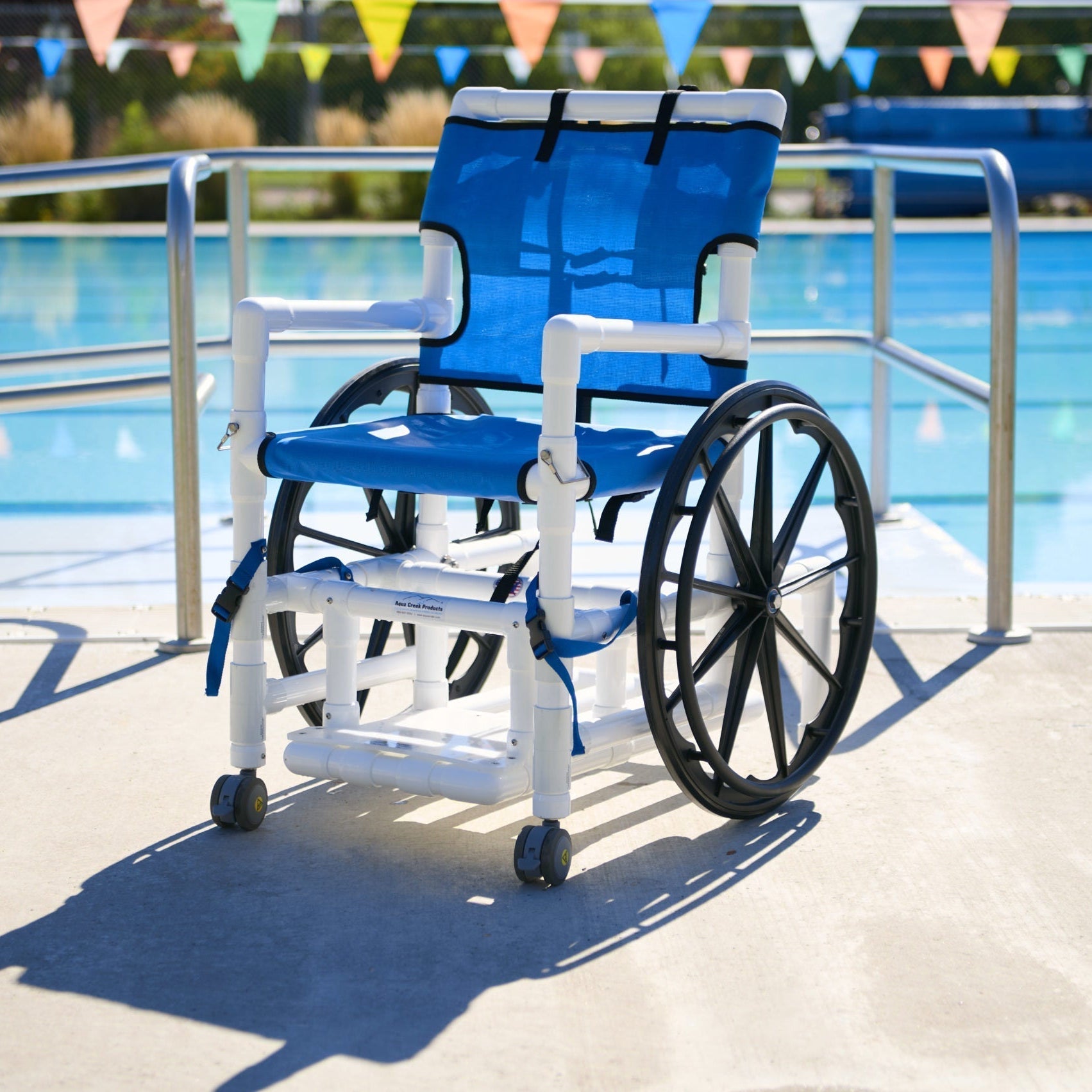 Aqua Creek’s PVC Pool Access Chairs offer an economical solution for ADA-compliant access to sloped entries and ramps. Their lightweight, durable, and corrosion-resistant construction makes them perfect for various aquatic facilities, including locker rooms and showers. Available in three sizes with mesh seats, these chairs come exclusively in white PVC with blue mesh.