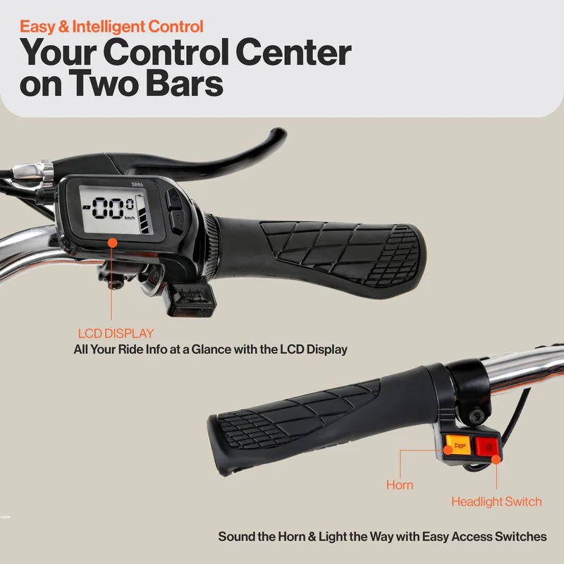 This tricycle's three-wheel design provides unmatched stability, supporting up to 330 LBS, making it ideal for seniors or biking beginners. With speeds up to 9.3mph and a range of 40 miles, it's equipped for every journey, complemented by a spacious rear basket and an informative LCD screen.