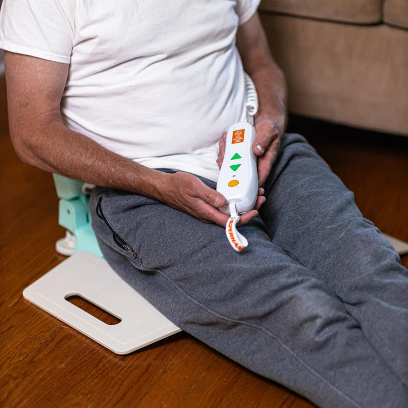 The SuperHandy GoRise LT Lightweight Floor Lift is a versatile mobility aid designed to assist caregivers and individuals with mobility challenges in safely lifting and transferring users from various positions, such as from the floor to a seated position.