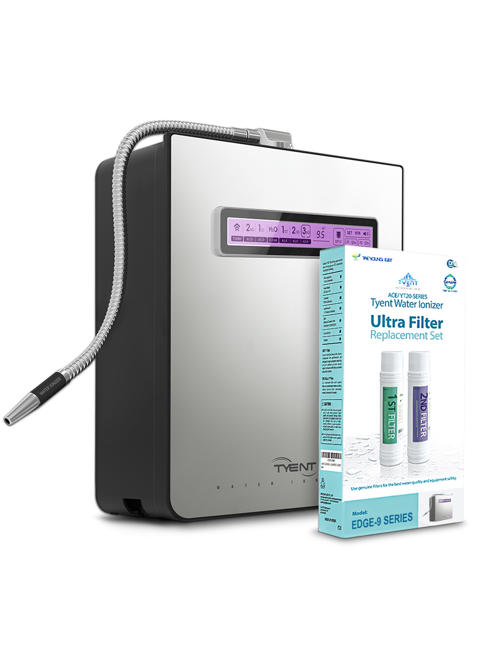 Tyent's Ultra Filter Set for the Edge-9000T uses a .01 micron filtration level, the same as what is used in kidney dialysis machines. "Ultra Plus" filtration ensures the PUREST, HEALTHIEST and SAFEST alkaline water available on earth. Witness the Amazing Taste and Health Benefits from Tyent's Ultra Filters for the Edge-9000T.